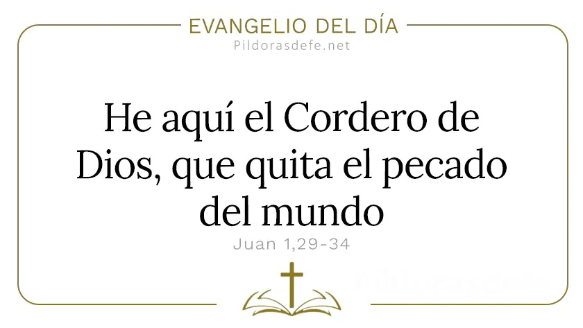 "He aquí el Cordero de Dios, que quita el pecado del mundo" es el mensaje central del Santo Evangelio de hoy domingo con las Lecturas de hoy, 18 de enero de 2026. Evangelio del día explicado según San Juan 1,29-34, con la Palabra diaria en domingo de la semana II del tiempo ordinario.