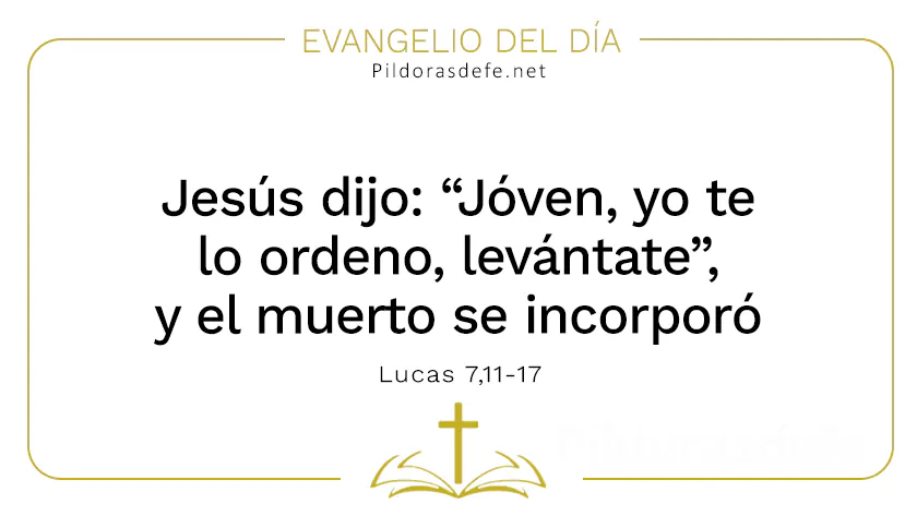 ¿Qué me dice este texto del Evangelio del día? Escribe en los comentarios las peticiones que el Evangelio de hoy domingo haya podido suscitar en ti. Mensaje del Evangelio del día, según San Lucas 7,11-17: "Joven, yo te lo ordeno, levántate, y el muerto se incorporó". Hoy, se nos invita a vivir con una fe esperanzada en el poder de Cristo sobre la muerte y el dolor. Estaremos orando por tus intenciones.