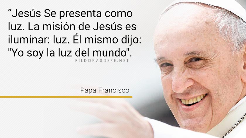 "Jesús se presenta como luz. La misión de Jesús es iluminar: luz. Él mismo dijo: "Yo soy la luz del mundo" (Juan 8,12)". Papa Francisco.