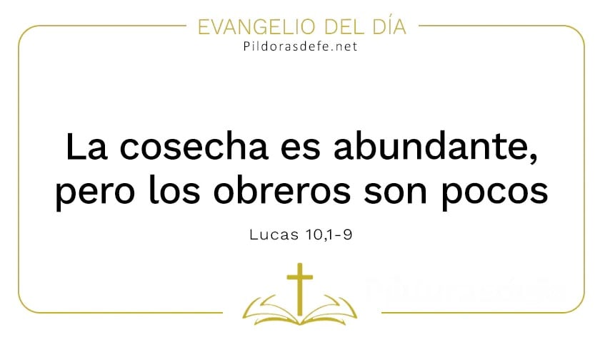 ¿Qué me dice este texto del Evangelio del día? Escribe en los comentarios las peticiones que el Evangelio de hoy sábado haya podido suscitar en ti. Mensaje del Evangelio del día, según San Lucas 10,1-9: "La cosecha es abundante, pero los obreros son pocos". Hoy, se nos invita a vivir nuestra fe desde una actitud misionera activa y confiada, conscientes de que todos somos enviados por el Señor a anunciar su Reino. Estaremos orando por tus intenciones.