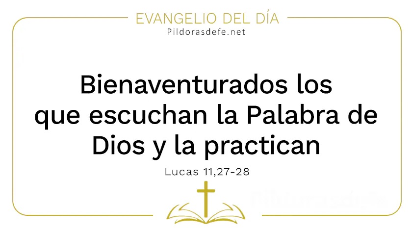"Bienaventurados los que escuchan la Palabra de Dios y la practican", es el mensaje central del Santo Evangelio de hoy sábado con las Lecturas de hoy, 11 de octubre, 2025. Evangelio del día explicado según San Lucas 11,27-28, con la Palabra diaria en el sábado de la semana 27 del tiempo ordinario.