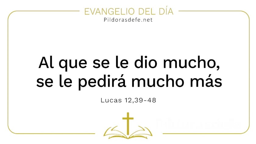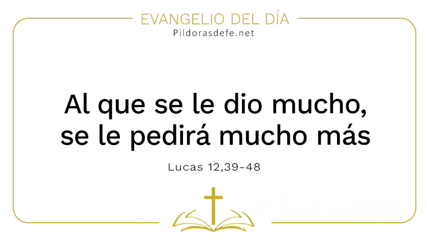 ¿Qué me dice este texto del Evangelio del día? Escribe en los comentarios las peticiones que el Evangelio de hoy miércoles haya podido suscitar en ti. Mensaje del Evangelio del día, según San Lucas 12,39-48: "Al que mucho se le ha confiado, se le exigirá mucho más. Hoy, se nos invita a vivir una fe responsable, consciente y vigilante. Estaremos orando por tus intenciones.