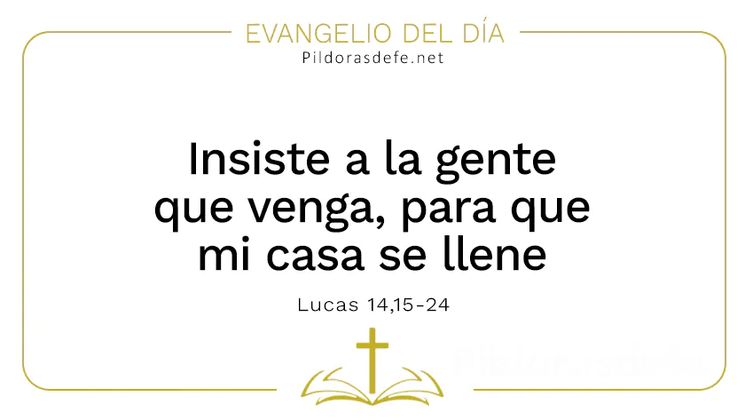 En el Evangelio de hoy martes, según San Lucas 14,15-24, leemos: "Insiste a la gente que venga, para que mi casa se llene". ¿Qué nos dice el Evangelio del día de hoy? La Palabra diaria nos llama a reconocer que el Reino de Dios es una fiesta abierta a todos, pero especialmente a quienes tienen el corazón dispuesto.