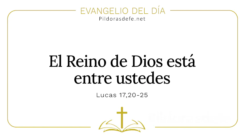 En el Evangelio de hoy jueves, según San Lucas 17,20-25, leemos: "Porque el Reino de Dios está entre ustedes". ¿Qué nos dice el Evangelio del día de hoy? La Palabra diaria nos llama a descubrir que el Reino de Dios no es un acontecimiento futuro o lejano, sino una realidad viva que habita en cada uno de nosotros.