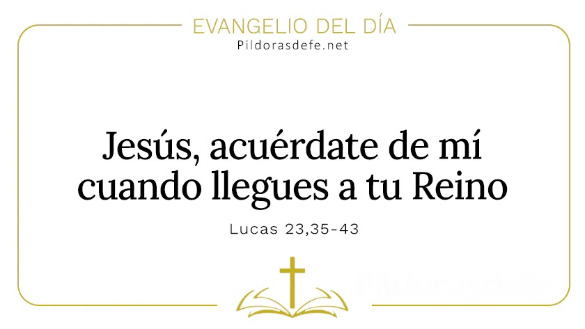 "Jesús, acuérdate de mí cuando llegues a tu Reino", es el mensaje central del Santo Evangelio de hoy domingo con las Lecturas de hoy, 23 de noviembre de 2025. Evangelio del día explicado según San Lucas 23,35-43, con la Palabra diaria en el domingo de la Solemnidad de Cristo Rey.