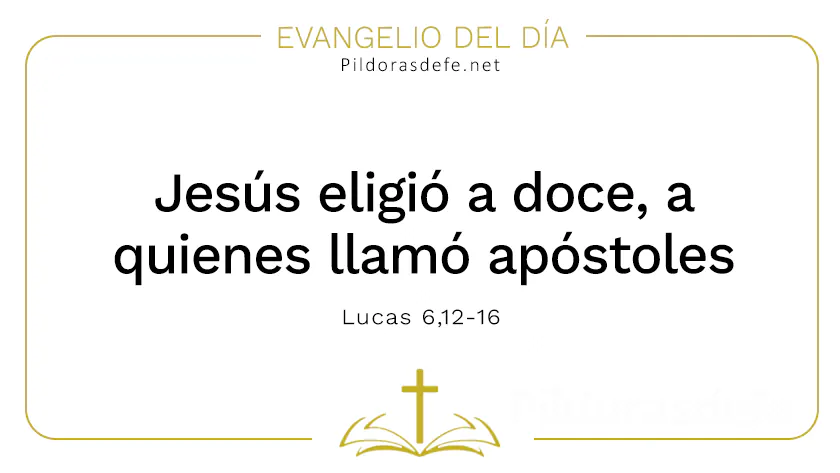 En aquellos días, Jesús se retiró a una montaña para orar, y pasó toda la noche en oración con Dios. Cuando se hizo de día, llamó a sus discípulos y eligió a doce de ellos, a los que dio el nombre de Apóstoles: Simón, a quien puso el sobrenombre de Pedro, Andrés, su hermano, Santiago, Juan, Felipe, Bartolomé, Mateo, Tomás, Santiago, hijo de Alfeo, Simón, llamado el Zelote, Judas, hijo de Santiago, y Judas Iscariote, que fue el traidor. Palabra del Señor. Gloria a ti, Señor Jesús.