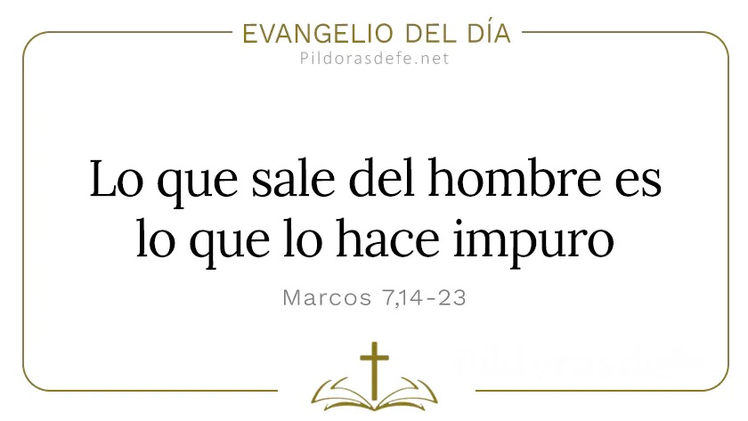 Lectura del día: Marcos 7,14-23: Lo que sale del hombre es lo que lo contamina.