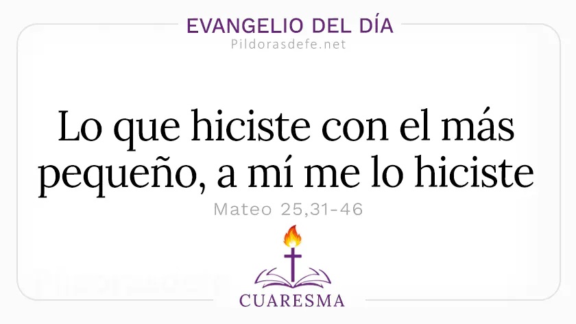 Lectura del día: Mateo 25,31-46: Lo que hiciste al más pequeño de mis hermanos, lo hiciste conmigo
