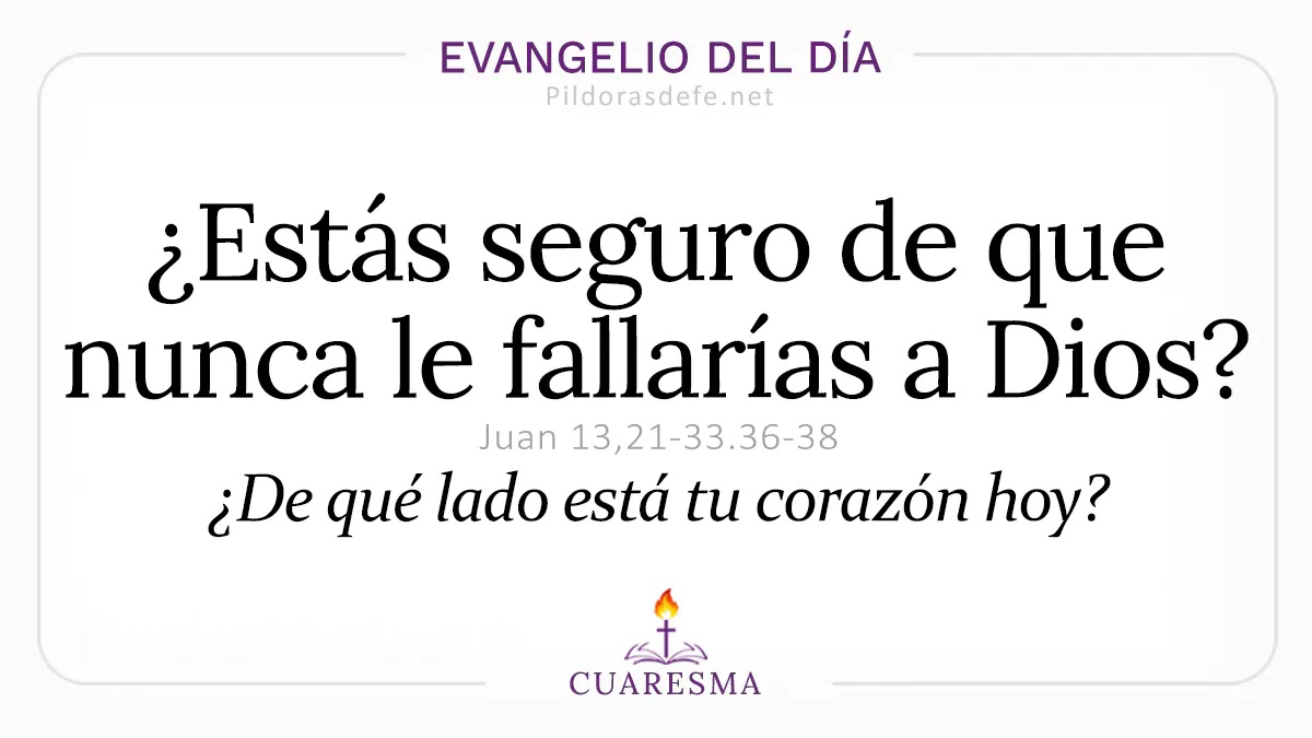 En este Martes Santo, se nos invita a permanecer cerca de Jesús, incluso cuando el camino se vuelve difícil. Nos recuerda que la fidelidad no se mide solo en momentos de entusiasmo, sino en la perseverancia cotidiana. También nos invita a no juzgar a los demás, reconociendo que todos estamos en proceso de crecimiento. Debemos confiar en que Dios actúa incluso en medio de nuestras caídas. La traición de Judas y la negación de Pedro no detienen el plan de salvación, sino que, misteriosamente, forman parte del camino hacia la redención. Así que, acerquémonos a Dios con humildad, confiemos en su misericordia y renovemos nuestro compromiso de seguirlo con fidelidad. (Redacción: Grupo de Evangelización de Pildorasdefe.net, 31 de marzo de 2026)