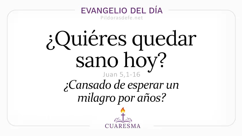 El Evangelio del día nos presenta a un hombre enfermo que llevaba casi cuatro décadas esperando una oportunidad para sanar, y probablemente su esperanza se había debilitado con el paso de los años. Sin embargo, el encuentro con Jesús cambió completamente su historia. Este detalle nos recuerda que la gracia de Dios puede llegar en el momento menos esperado. Durante la Cuaresma, este mensaje se convierte en una invitación profunda a confiar en la acción de Dios en su tiempo perfecto. Hoy, al igual que Jesús invitó al hombre enfermo a levantarse y caminar, también nos invita a cada uno de nosotros a dejar atrás aquello que nos mantiene paralizados: el miedo, la culpa, el resentimiento o la falta de esperanza. Confiemos en la misericordia de Cristo y en que su gracia es capaz de transformar nuestras debilidades en vida nueva. (Redacción: Grupo de Evangelización de Pildorasdefe.net, 17 de marzo de 2026)