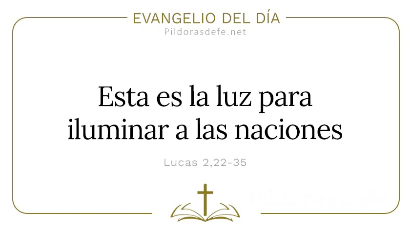 ¿Qué me dice este texto del Evangelio del día? Escribe en los comentarios las peticiones que el Evangelio de hoy lunes haya podido suscitar en ti. Mensaje del Evangelio del día, según San Lucas 2,22-35: "Esta es la luz para iluminar a las naciones". Hoy, se nos invita a renovar nuestra manera de presentarnos ante Dios con todo lo que somos y tenemos. Estaremos orando por tus intenciones.