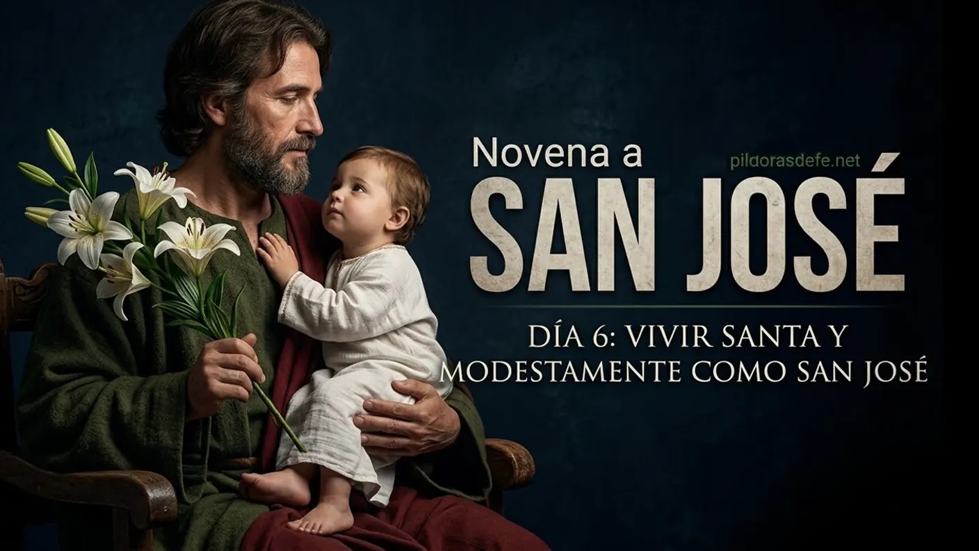 Con el día 6 de la Novena a San José Custodio, meditamos sobre cómo vivimos nuestra vida. Revisamos el corazón y aprendemos a vivir de forma santa y modesta, como lo hizo San José. Jesús debió de querer y respetar muchísimo a San José y a María, pues el Evangelio dice que, tras el hallazgo en el Templo, Jesús volvió a Nazaret y "les obedecía" (Lucas 2,51). En definitiva, dejó de lado desinteresadamente sus propias necesidades por el bien de su familia. Para el sexto día de la Novena a San José Custodio, pedir la intercesión poderosa de este Santo para que nuestra vida pueda honrar a Dios en todo sentido. Vivamos de forma santa y modesta como San José.