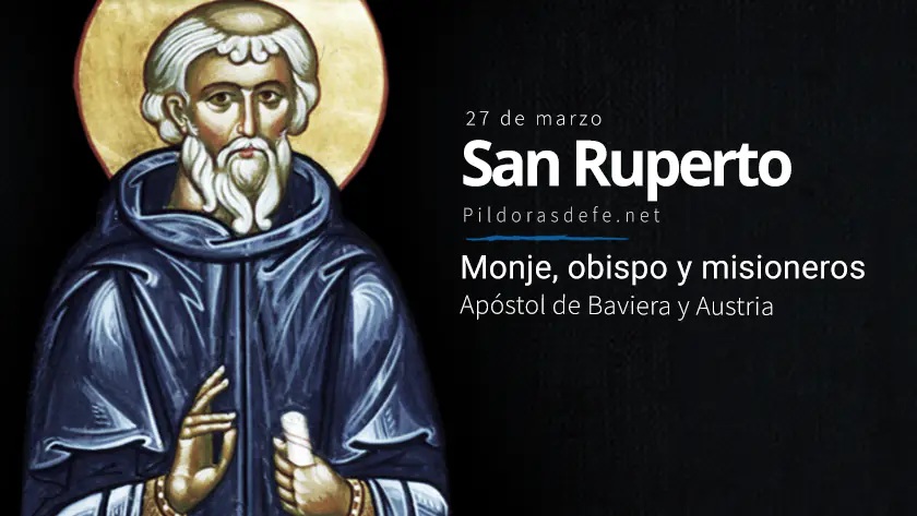 San Ruperto (San Ruperto de Worms, o también San Ruperto de Salzburgo) fue un obispo y misionero de la iglesia que se dedicó a la predicación con un gran testimonio de vida. Es el santo patrono de Salzburgo. Con el apoyo del conde Theodo de Baviera, San Ruperto fundó una iglesia dedicada a San Pedro Waller y luego fundó un monasterio a orillas del río Salzach. Este fue el núcleo de la nueva Salzburgo, "la ciudad de la sal", que lo reconoce no solo como el primer obispo, sino también como el re-fundador. Abrazó una vida de oración, ayuno, ascetismo y caridad hacia los pobres.